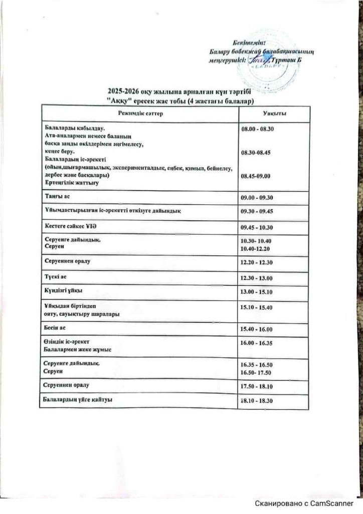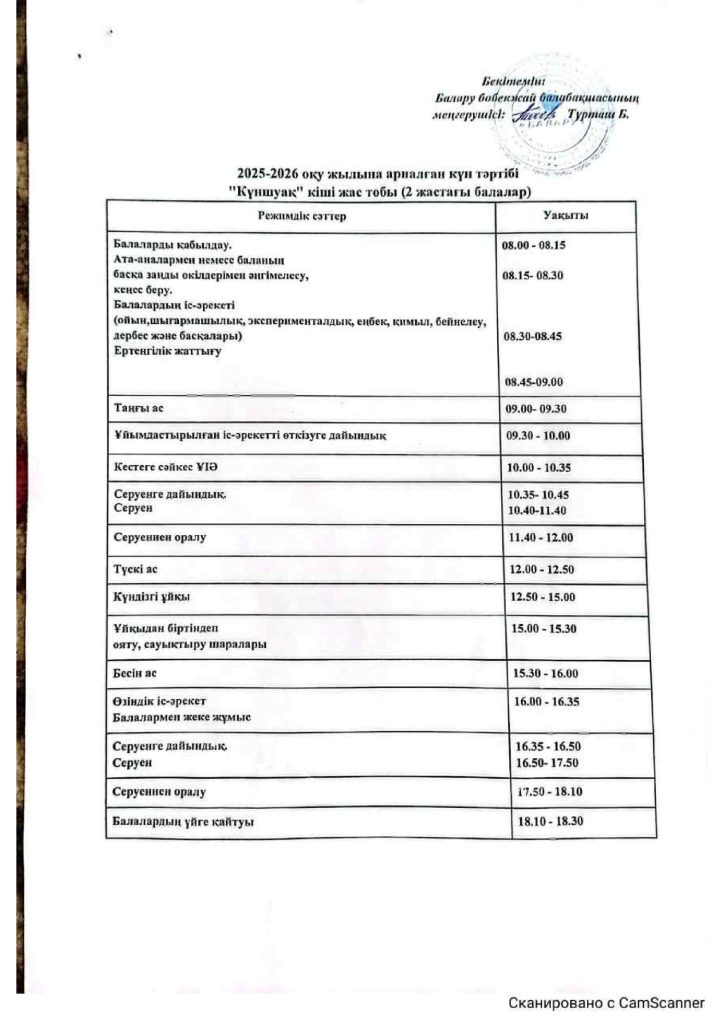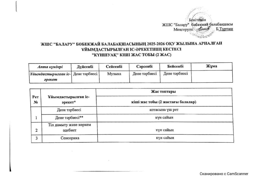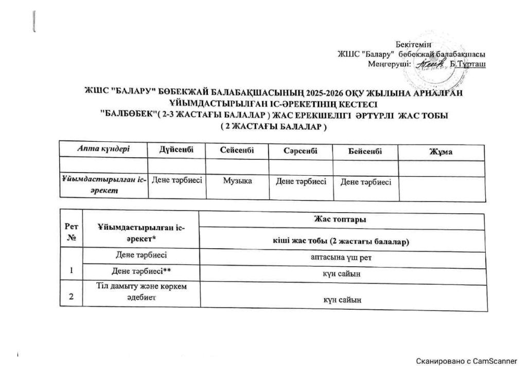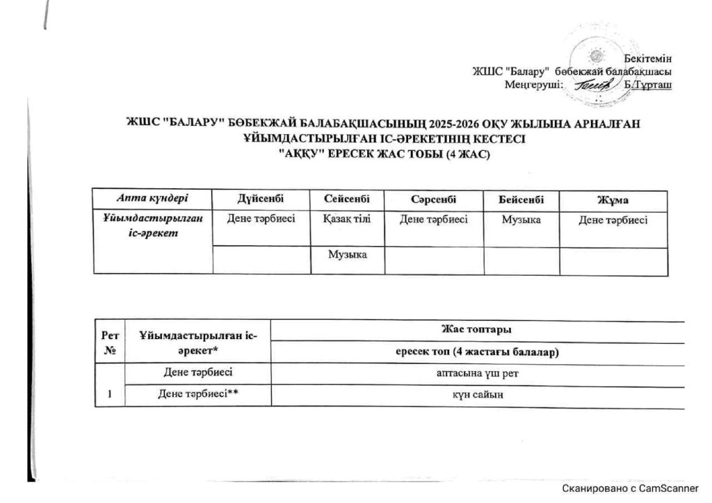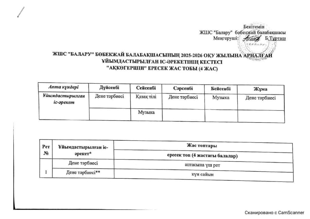КҮН ТӘРТІБІ, ОҚУ ІС-ӘРЕКЕТ КЕСТЕСІ
