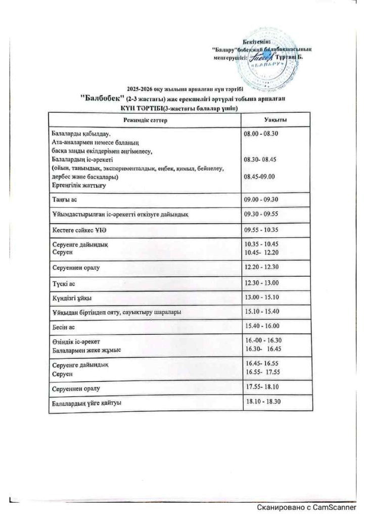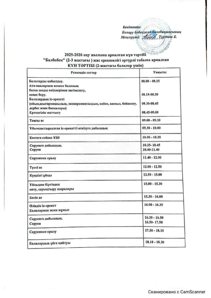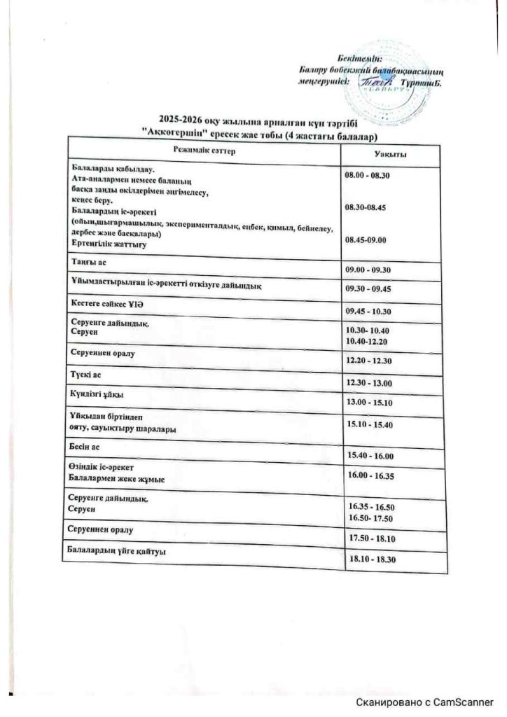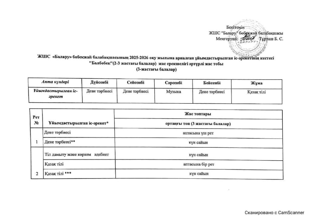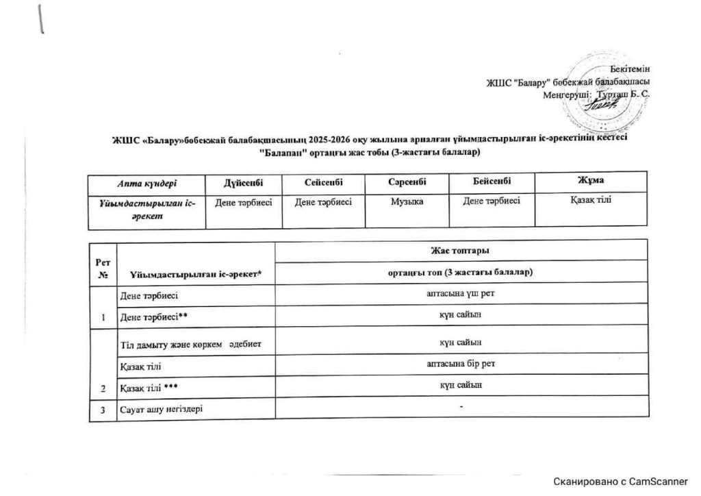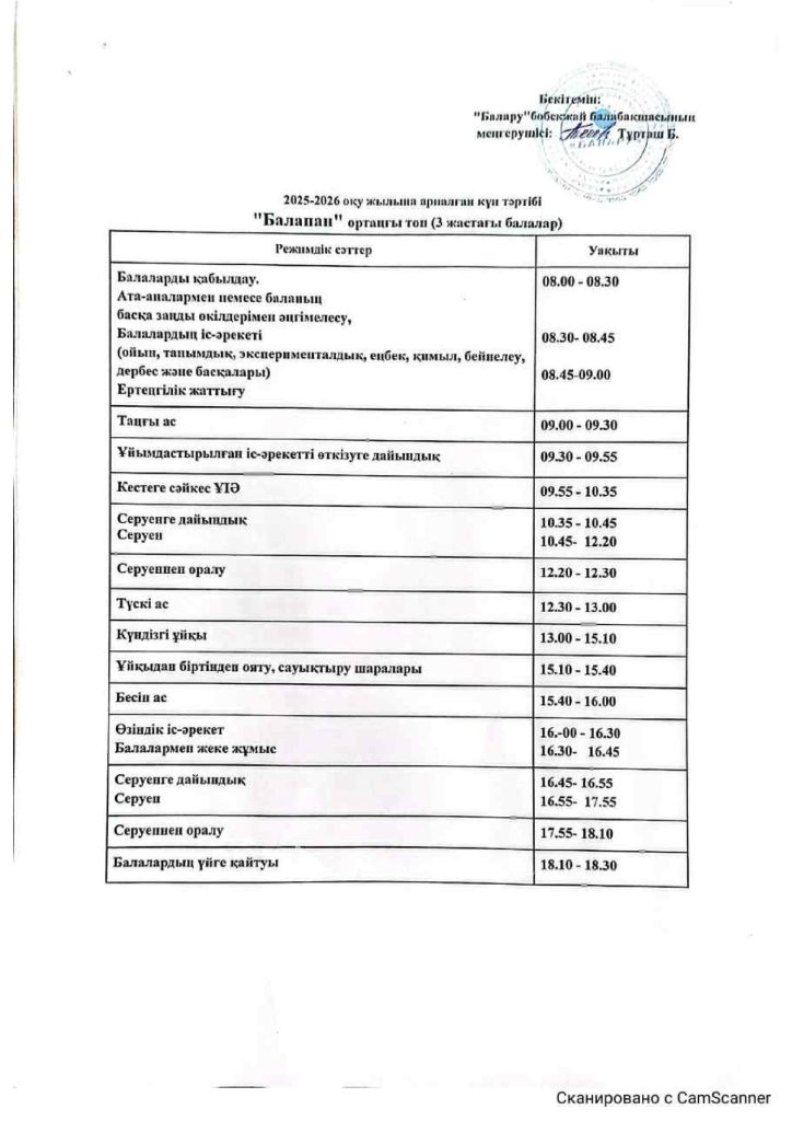 КҮН ТӘРТІБІ, ОҚУ ІС-ӘРЕКЕТ КЕСТЕСІ